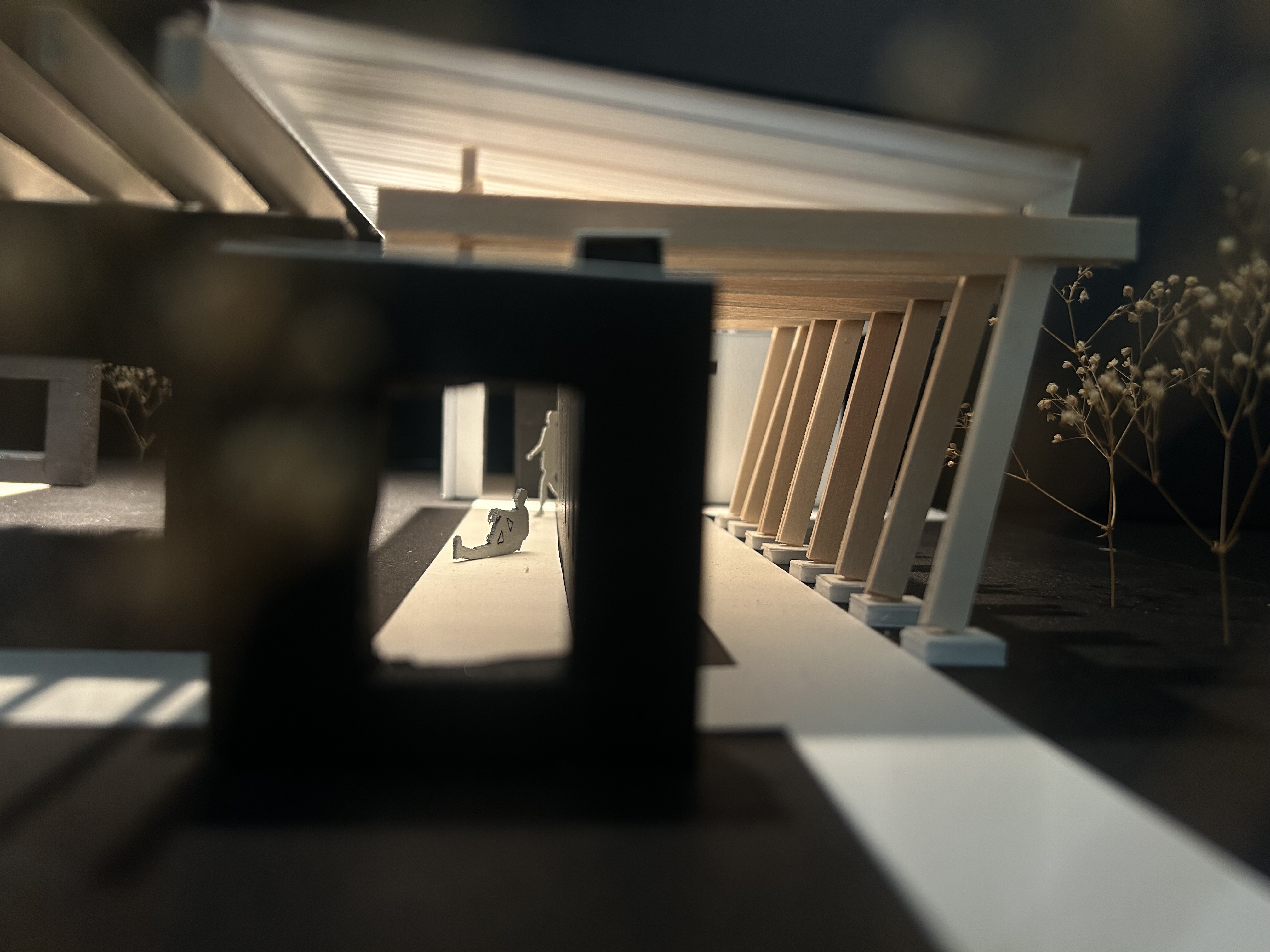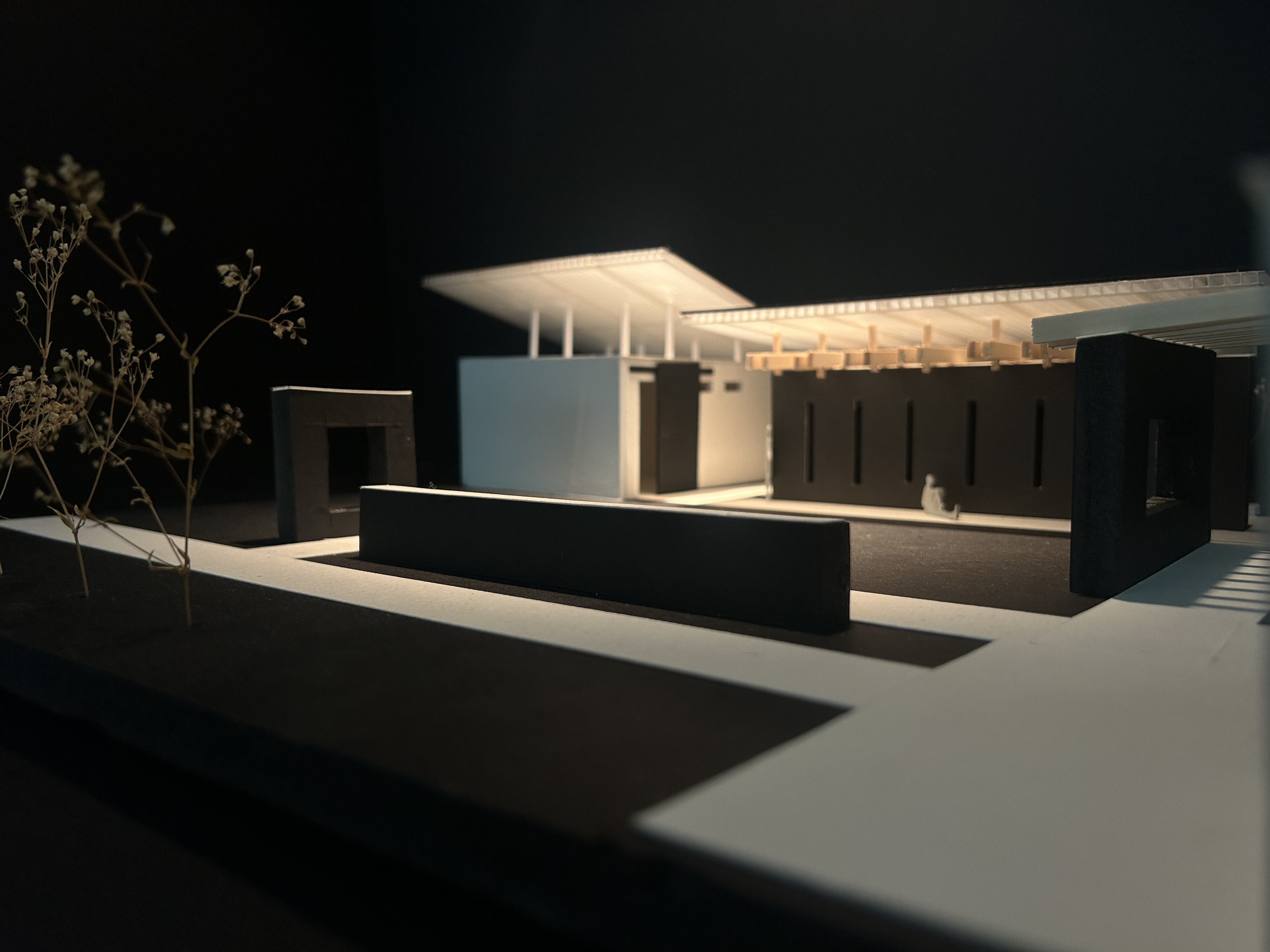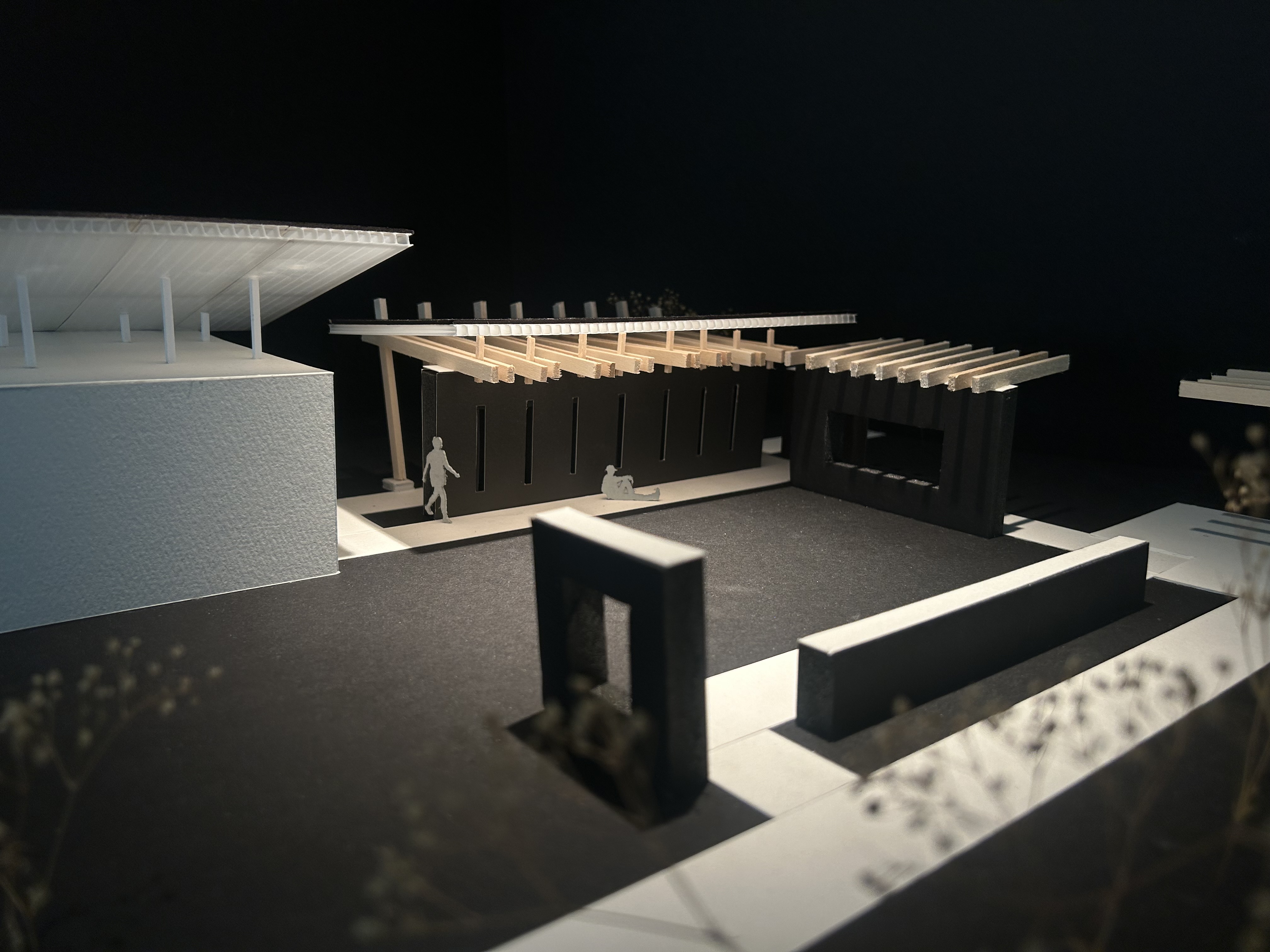 The pavilion form is constructed via a focus on the courtyard. The structure utilizes earthy stone masses that erect from the earth and allows for overhead beams to provide shade. The name Framed View is derived from the pavilion’s ability to step back and frame the surrounding landscape. A balance of Light beams and polycarbonate roofing contrasting the heavy stone massing that creates the negative space for the visitors to roam. A light gravel trail that follows the form of the pavilion grabs you towards the various entrances and seamlessly transitions with the natural earth.